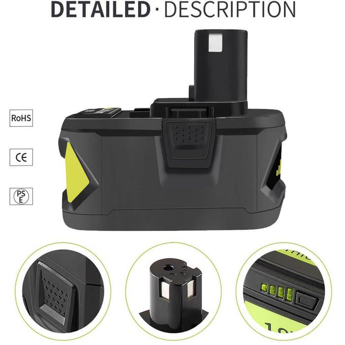 BID-1801M, BID-180L, BID1821, BIW180,CAD-180L, CAG-180M, CAP-1801M ,CCC-1801M, CCC-180L, CCD-1801, CCG-1801M, CCG-180L, CCS-1801/DM,CCS-1801/LM, CCS-1801D, CCS-1801LM, CCW-180L,CDA-18021B, CDA1802, CDA18021B, CDA18022B, CDA1802M, CDC-181M, CDI-1802 CDI-1802M, CDI-1803, CDI-1803M,CFA-180M, CFP-180FM, CFP-180S, CFP-180SM,CHD-1801M, CHI-1802M, CHP-1802M, CHV-180L, CHV-18WDM ,CID-1802M, CID-1803L, CID-1803M, CID-182L, CID-183L,CJS-180L, CJS-180LM, CJSP-1801QEOM, CJSP-180QEO, CJSP-180QEOM ,CMD-1802, CMD-1802M, CMI-1802, CMI-1802M, CML-180M ,CNS-1801M, CNS-180L, CTR-180L, CW-1800 ,CP-180M, CPD-1800, CPL-180M ,CSL-180L, CSS-1801M, CSS-180L, CST-180M, LCD1802, LCD18021B, LCD18022B, LCD1802M, LCS-180 ,LDD-1802, LDD-1802PB, LDD1801PB, LDD1802PB ,LFP-1802S, LRS-180, OWD-1801M,OBL-1801, OCS-1840, OGS-1820, OHT-1850, OLT-1830, OPS-1820, ORS-1801,P340, P300, P301, P310 ,P400, P410, P420, P430 ,P500, P501, P506, P510, P514, P520, P521, P522, P530, P540, P570,P600, P610, P631K, P650 ,P700, P701G, P703, P704, P710, P711, P715, P716, P730, P731, P740, P741 Replacement Part Numbers:RYOBI BPL-1815, BPL-1820G, BPL18151, BPL1820, P102, P103 P104, P105, P106, P107, P108