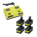 4 Pack For Ryobi 18V One Plus Battery Replacement With For Ryobi P117 Dual Chemistry 18V Li-ion & Ni-cad Ni-Mh 12V-18V Charger