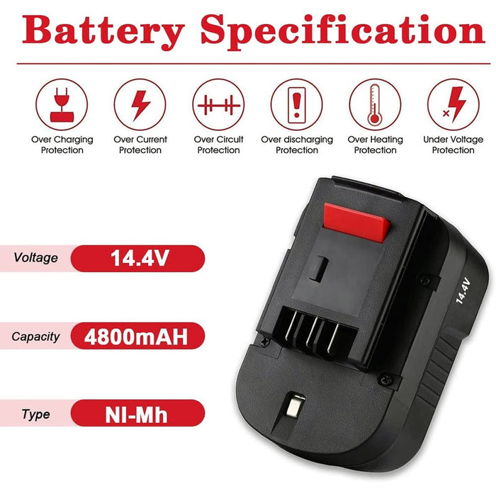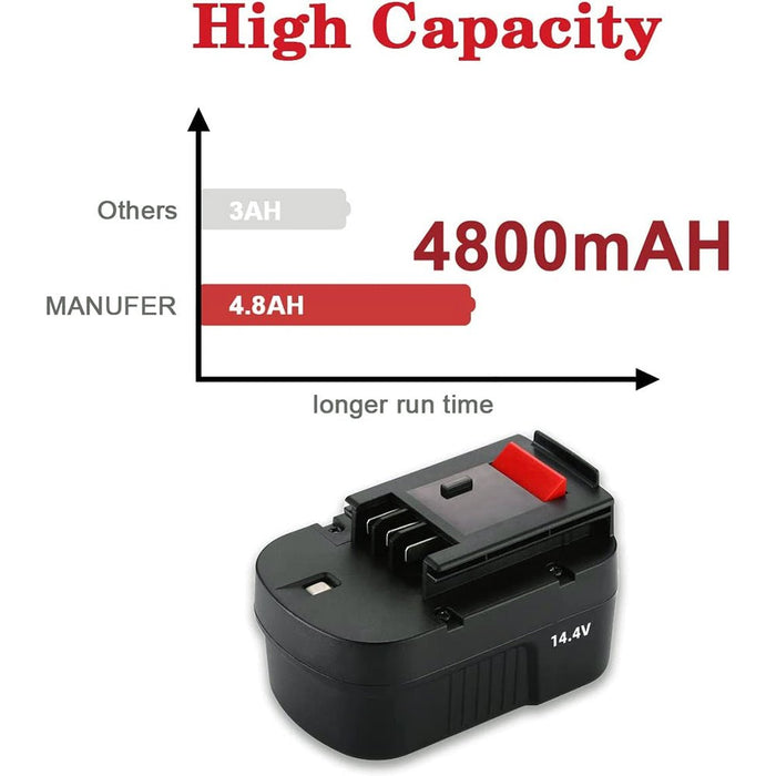 For Black and Decker Firestorm 14.4V Battery Replacement | HPB14 4.8Ah Ni-Mh Battery 2 Pack