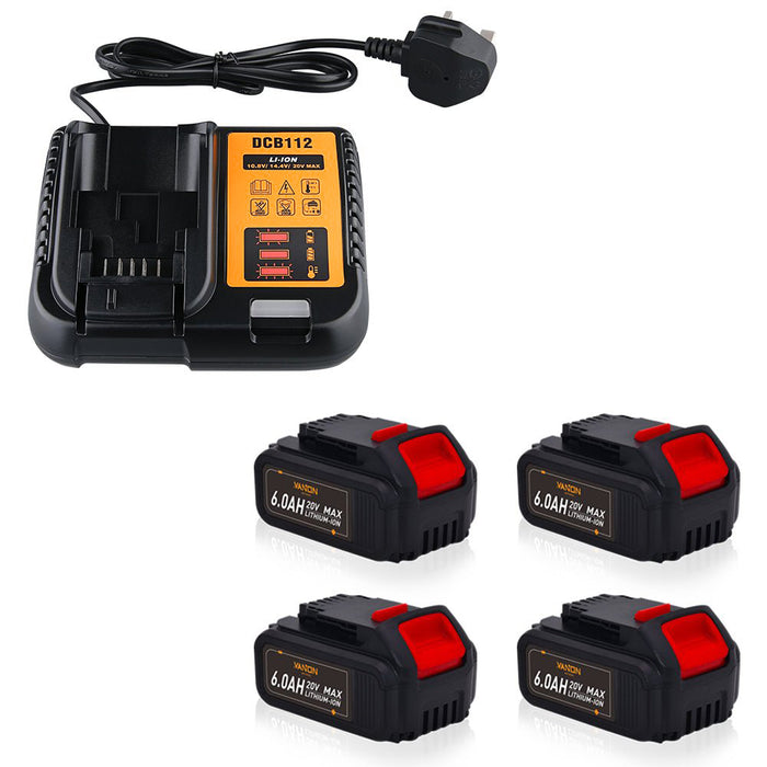 For Dewalt 20V Max Battery | DCB200 6.0Ah Li-ion Battery 2&4 Pack With DCB112 charger For Dewalt 20V Battery Charger | Replace DCB112 DCB107 DCB105