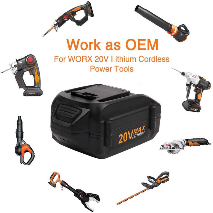 2 x 20V 6.0Ah Battery for Worx 20V Power Tools